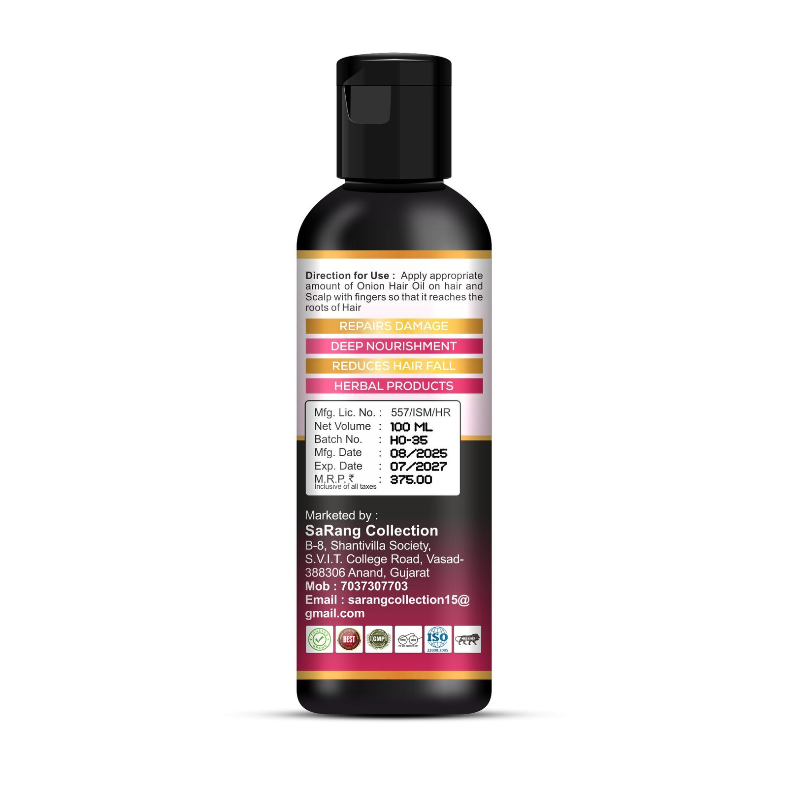 Onion Oil is rich in sulfur, antioxidants, and essential nutrients that strengthen hair follicles, boost blood circulation to the scalp, and encourage healthy hair growth naturally.